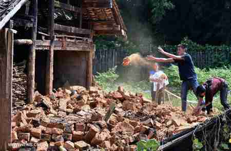 Villagers clean debris after SW China quake