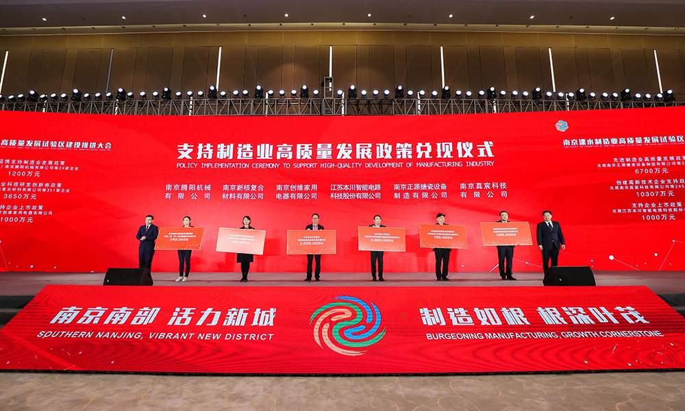 More than 1,000 guests gathered to discuss the construction and promotion of a high-quality development pilot zone for the manufacturing industry in the Lishui District of Nanjing, east China’s Jiangsu province, on March 24.
