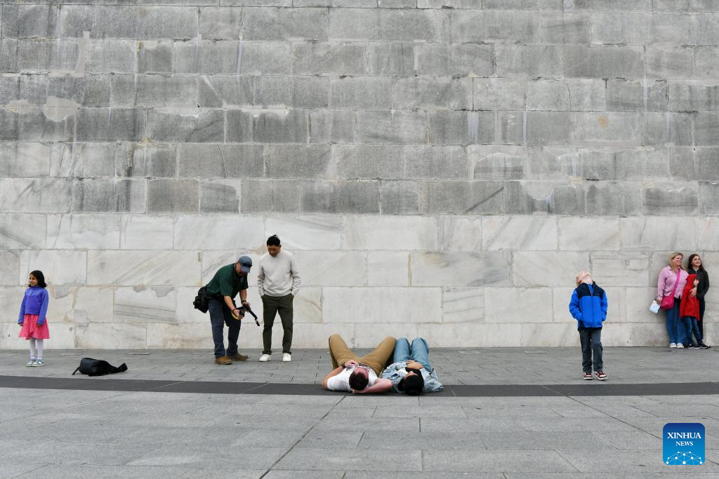 People are seen in front of the Washington Monument in Washington, D.C., the United States, Oct. 12, 2025. The federal government shutdown entered its…[More]