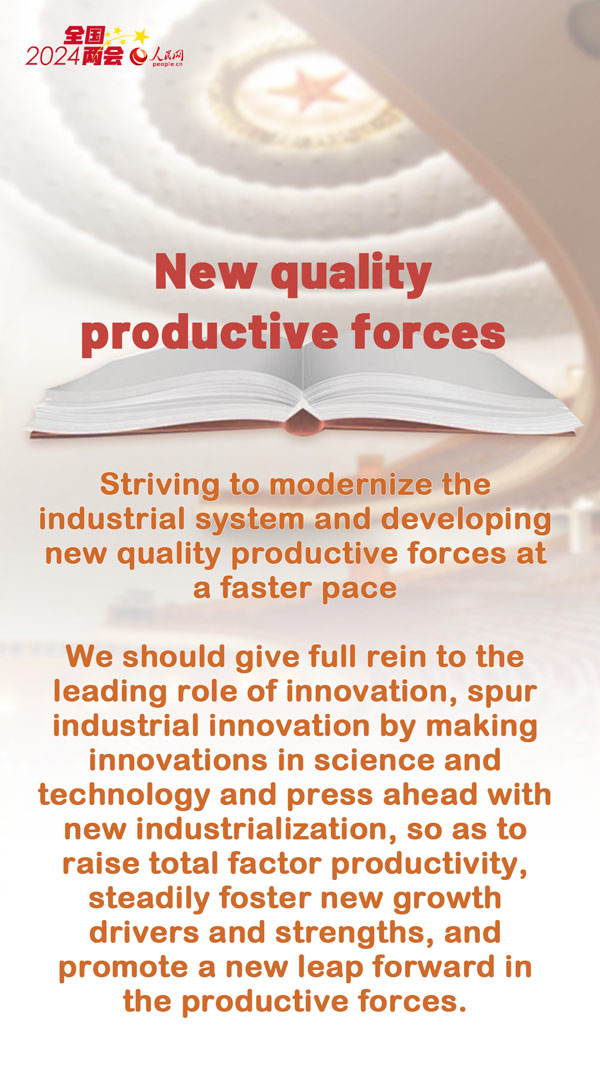 "New quality productive forces", the catchphrase that defined the recently concluded two sessions, the annual gatherings of China's top legislature and political advisory body, will signify the new growth drivers in the world's second-largest economy and seek to overcome both challenges and uncertainties, said national legislators, political advisers and industry experts.