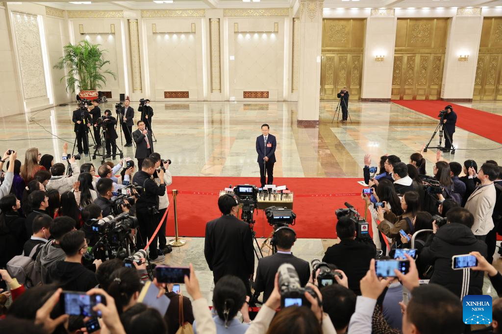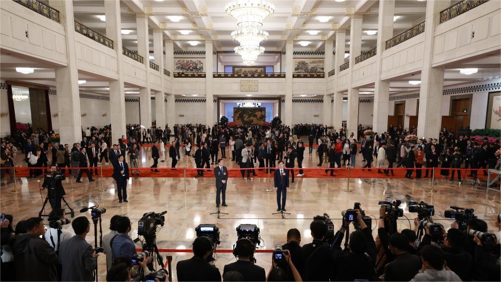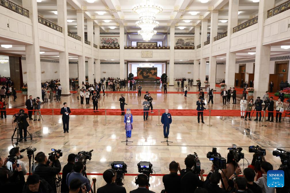 Deputies to the 14th National People's Congress (NPC) are interviewed ahead of the closing meeting of the second session of the 14th NPC at the Great Hall of the People in Beijing, capital of China, March 11, 2024. (Xinhua/Wang Jingqiang)