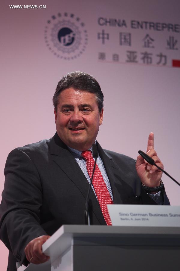 German Vice Chancellor and Economy and Energy Minister Sigmar Gabriel speaks during the 2014 Sino German Business Summit in Berlin, Germany, on June 4, 2014. (Xinhua/Zhang Fan)