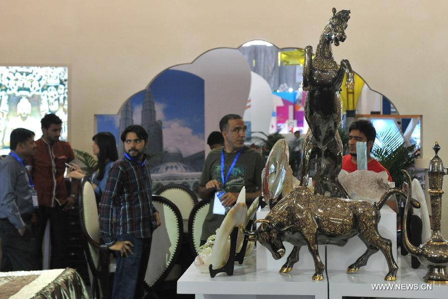 Exhibitors from Pakistan attend the 2nd China-South Asia Expo in Kunming, capital of southwest China's Yunnan Province, June 6, 2014. Over 1,000 enterprises from 46 countries and regions took part in the expo which will last till June 10. (Xinhua/Lin Yiguang)