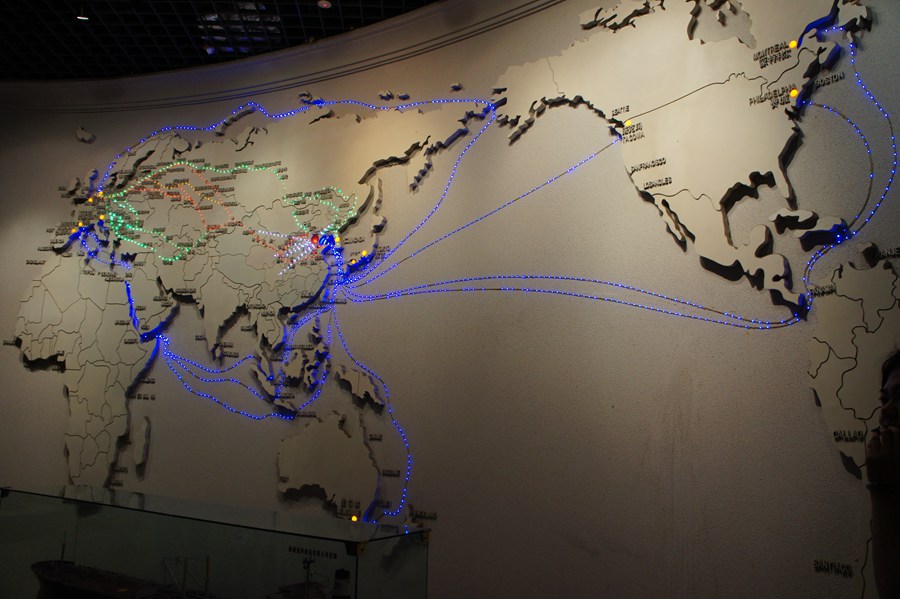 A general showcase of the maritime route related to Tianjin Port.(People's Daily Online/Li Xiang)