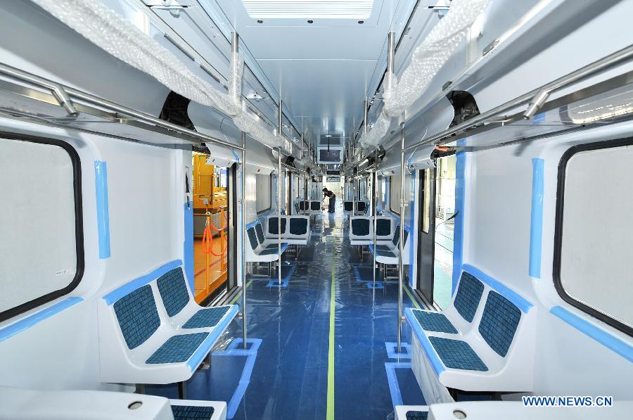 A worker assembles an EMU train to be sold to Brazil in a factory of CNR Changchun Railway Vehicles, a train manufacturer, in Changchun, capital of northeast China's Jilin Province, July 9, 2014. The Chinese company is making EMU trains for customers in Brazil and Argentina under purchase orders amounting to 100 and 150 trains respectively. It is also the manufacturer of train units which will serve the 2016 Summer Olympic Games in Rio de Jeneiro. (Xinhua/Xu Chang)