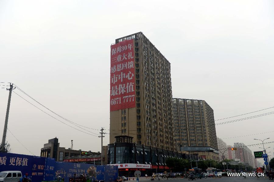 | A new building on sale is seen in Jinan, capital of east China's Shandong Province, July 10, 2014. Jinan on Thursday lifted its three-year home purchase restrictions by allowing residents to buy more properties. (Xinhua/Zhu Zheng) |