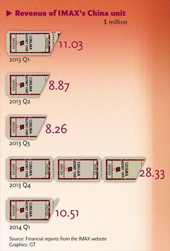 The total revenue for IMAX in China hit $10.5 million in the first quarter this year, compared to $11.03 million in the previous year, according to IMAX's first-quarter report.