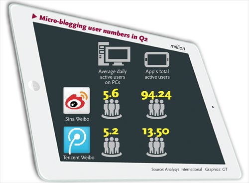 Tencent Weibo has over 500 million registered users. "But most users of Tencent Weibo come from Tencent's instant messaging service QQ. Tencent Weibo itself does not have strong influence among users," Li Xinran, an analyst at consultancy Analysys International, told the Global Times Wednesday.