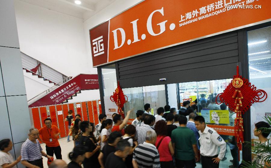 Citizens walk into the Waigaoqiao Direct Imported Goods market in the Shanghai Free Trade Zone (FTZ) in Shanghai, east China, Aug. 13, 2014. The Shanghai FTZ was launched in September 2013. It allows foreign businesses to invest in a series of sectors. [Photo: Xinhua/Fang Zhe]