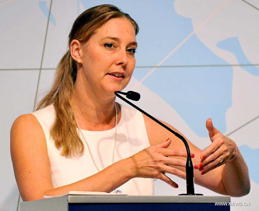 Jennifer Rupp, professor of electrochemical materials group head of ETH Zurich Switzerland, speaks at the Annual Meeting of the New Champions 2014, also known as the Summer Davos forum, in Tianjin, north China, Sept. 12, 2014. (Xinhua/Yue Yuewei)