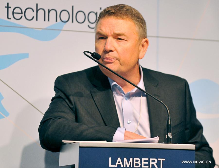 Gordon Lambert, executive adviser of Canada-based Sustainability and Innovation Suncor Energy Inc., speaks at the Annual Meeting of the New Champions 2014, also known as the Summer Davos forum, in Tianjin, north China, Sept. 12, 2014. (Xinhua/Yue Yuewei)