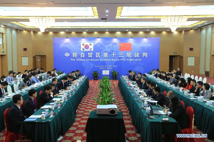 | The 13th round of the China-South Korea free trade agreement negotiation is held in Beijing, capital of China, Sept. 22, 2014. (Xinhua/Xing Guangli) |