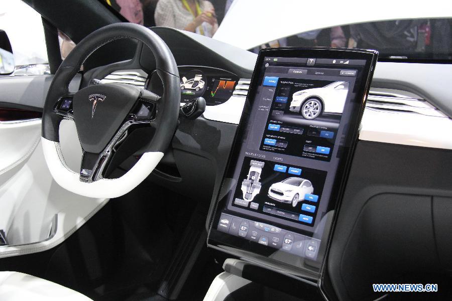 | Navigate panel of a Telsa sedan is seen during the 2015 International Consumer Electronics Show (CES) in Las Vegas, the United States, on Jan. 7, 2015. (Xinhua/Yang Lei) |