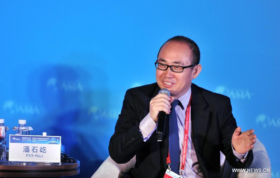 Chairman of SOHO China Ltd Pan Shiyi speaks at the sub-forum with the theme "Doing Business the Internet Way" during the 2015 Boao Forum for Asia (BFA) in Boao, south China's Hainan Province, March 29, 2015. (Xinhua/Yang Guanyu)