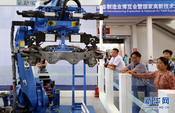 Zheng Weiping, an assistant manager of the office of the president of CWB Group, a vehicle electronic company, told people.cn that robots have greatly improved the company's efficiency, because one robot can do the work in a day equivalent to six laborers working continuously for a week.