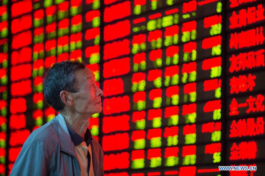 | An investor follows information at a stock trading hall in Nanjing, capital of east China's Jiangsu Province, May 8, 2015. Chinese shares rallied after a three-day losing streak on Friday with a key index tracking listed startup companies rising considerably. The benchmark Shanghai Composite Index rose 2.28 percent to finish at 4,205.92 points, while the Shenzhen Component Index gained 2.6 percent to close at 14,481.25 points. (Xinhua/Su Yang) |