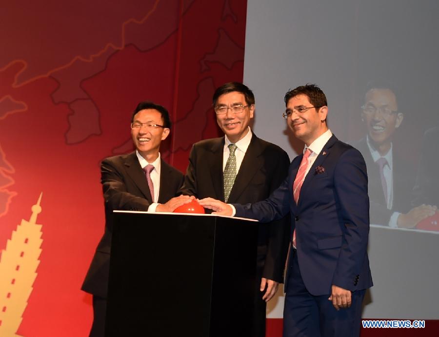 | Chinese Ambassador to Turkey Yu Hongyang (L), Industrial and Commercial Bank of China Limited (ICBC) chairman Jiang Jianqing (C) and vice governor of Istanbul Province Ismail Gultekin attend the inauguration ceremony of the acquisition of Tekstilbank by ICBC in Istanbul, Turkey, on May 25, 2015. ICBC, world's largest bank, said here on Monday that it completed the acquisition of 75.5 percent stake in Tekstilbank from Turkish GSD Holding, making it the first business institution operated by a Chinese bank in the country. (Xinhua/He Canling) |