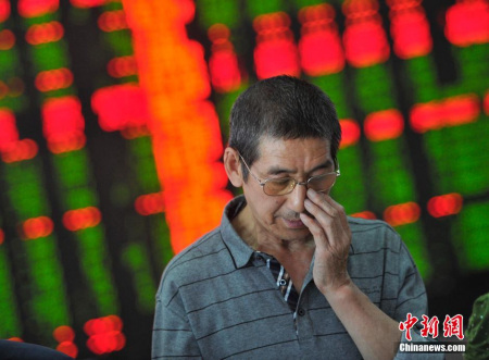 | June 19, Taiyuan, a man looks sad in a securities business hall. (Photo:China News Service/Wei Liang) |