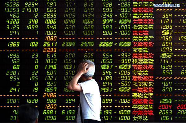 | An investor looks through stock information at a trading hall in a securities firm in Shenyang, northeast China's Liaoning Province, July 7, 2015. Chinese shares lost to negative territory on Tuesday, with the benchmark Shanghai Composite Index down 1.29 percent to finish at 3,727.13 points. The Shenzhen Component Index slumped 5.8 percent to close at 11,375.6 points. (Xinhua/Pan Yulong) |