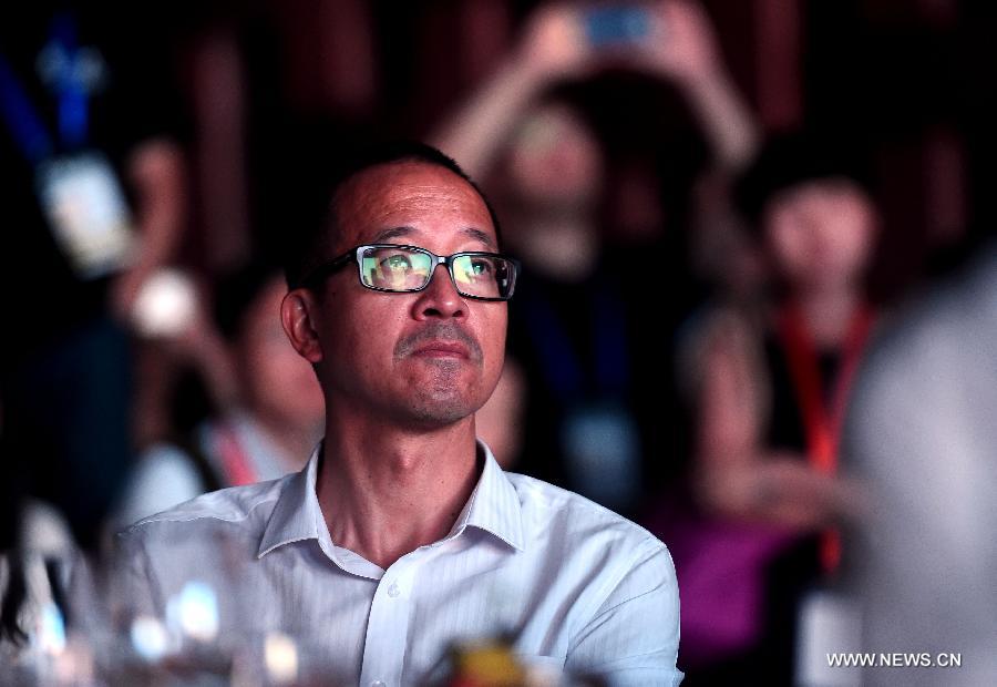 Yu Minhong, chairman of New Oriental Education & Technology Group, attends a business event with the theme of "Builders and Movers" held by Legend Holdings in Beijing, capital of China, July 7, 2015. Legend Holdings, the parent company of the world's largest PC maker Lenovo, had its stock listed on Hong Kong Stock Exchange on June 29, 2015. (Xinhua/Jin Liangkuai)