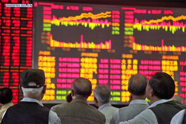 Investors look through stock information at a securities firm in east China's Shanghai, Oct. 15, 2015. Chinese shares closed notably higher on Thursday, with the benchmark Shanghai Composite Index up 2.32 percent to end at 3,338.07 points. The smaller Shenzhen index advanced 3.01 percent to close at 11,229.38 points. (Xinhua/Zhuang Yi)