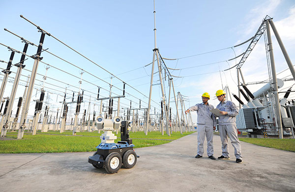 An intelligent robot inspects the equipment at a transformer station in Quanjiao county, Anhui province. [Song Weixing / China Daily]