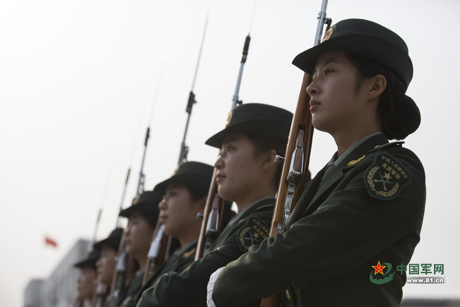 A set of photos released by www.81.cn captures the rarely seen training scenes of the PLA's first female honor guard, whose debut on Monday immediately grabbed public attention. (Photo/Wan Xiaojun)