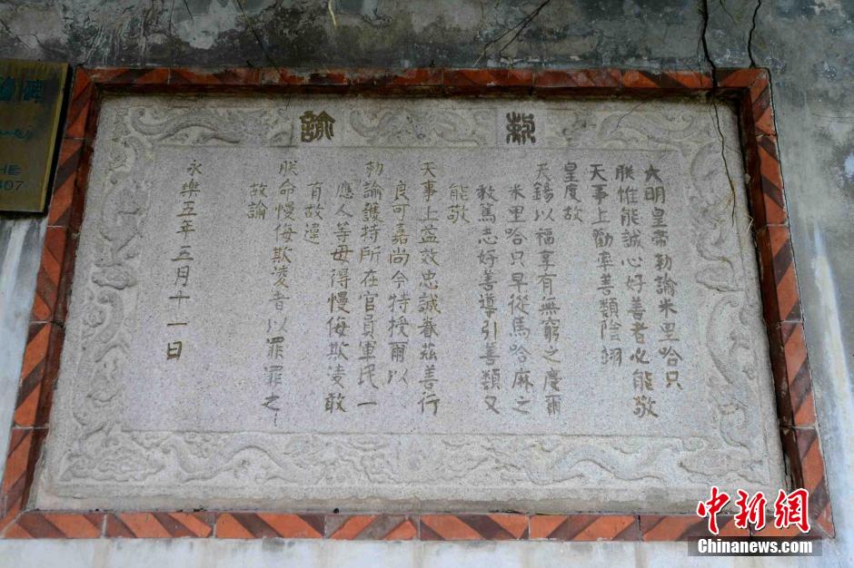 Stone inscription of the edict for protecting Qingjing Mosque and Islam issued by Ming Emperor Yongle in 1407.(Chinanews/Wang Dongming)