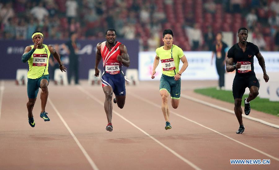 Tiffany Townsend of the United States falls during the women's 200 meters at the IAAF World Challenge Beijing, China, May 21, 2014. (Xinhua/Bai Xuefei)