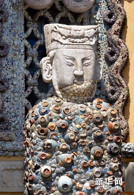 A damaged stone sculpture decorated with porcelain fragments outside China House. [Photo/Xinhua]
