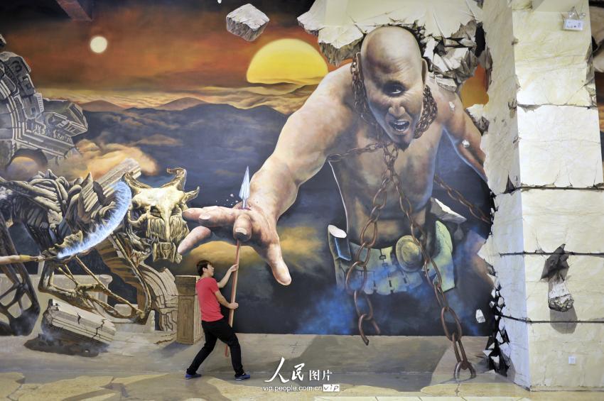 The largest 3D magic city in Asia opened in Guangzhou recently. Visitors can interact with the 3D paintings by posing with them. The photos are interesting because the 3D effect can give a transcending experience to visitors.(vip.people.com.cn/Gao Dianhua)