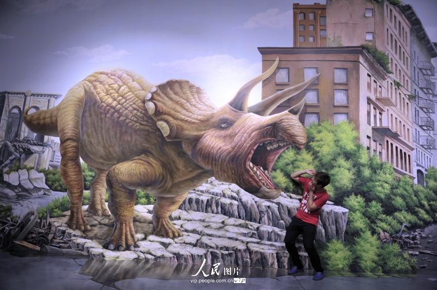 The largest 3D magic city in Asia opened in Guangzhou recently. Visitors can interact with the 3D paintings by posing with them. The photos are interesting because the 3D effect can give a transcending experience to visitors.(vip.people.com.cn/Gao Dianhua)