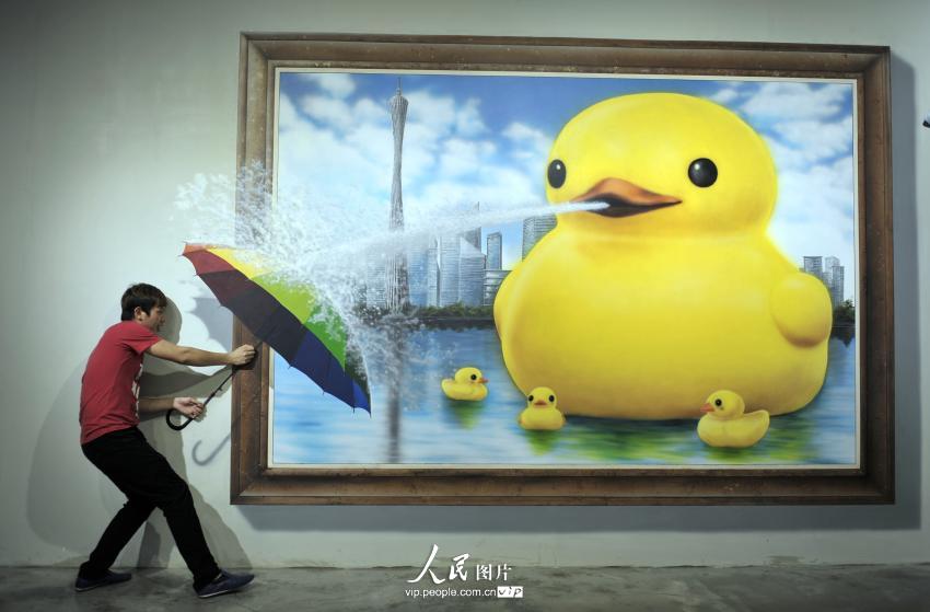 The largest 3D magic city in Asia opened in Guangzhou recently. Visitors can interact with the 3D paintings by posing with them. The photos are interesting because the 3D effect can give a transcending experience to visitors.(vip.people.com.cn/Gao Dianhua)