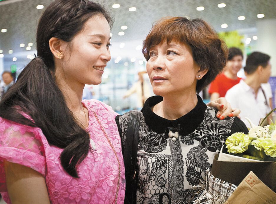 Weng meets with her birth mother at the airport. (Photo/Long Kun)