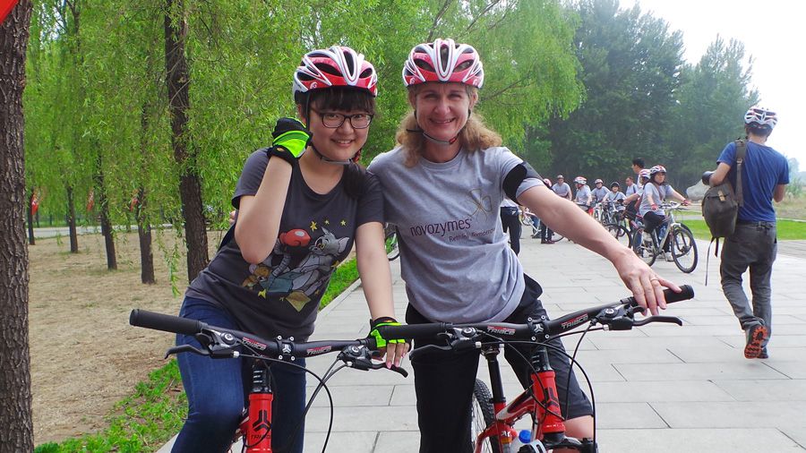 Participants pose for photo before the “Climate Race ” in Beijing Yeya Lake National Wetland Park in Yanqing north of Beijing on May 24, 2014. (People’s Daily Online Kong Defang)