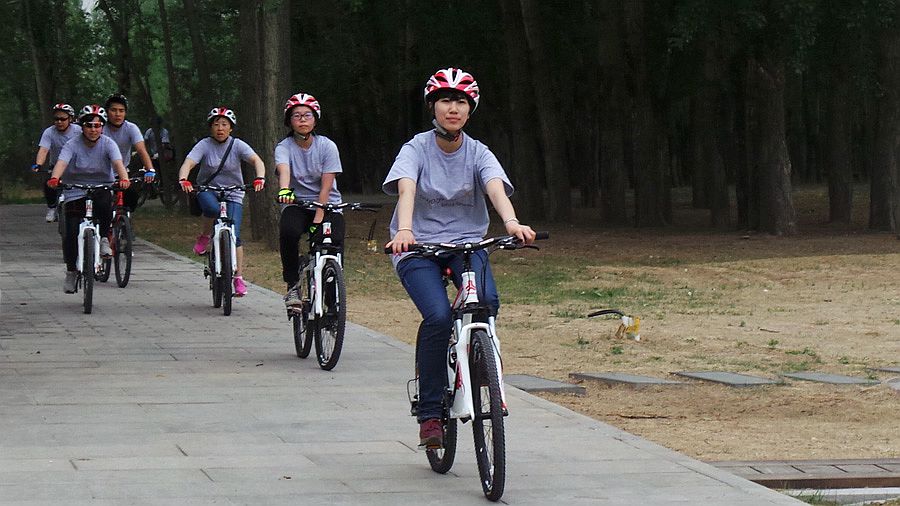 Participants ride in Beijing Yeya Lake National Wetland Park in Yanqing north of Beijing on May 24, 2014. (People’s Daily Online/Kong Defang)
