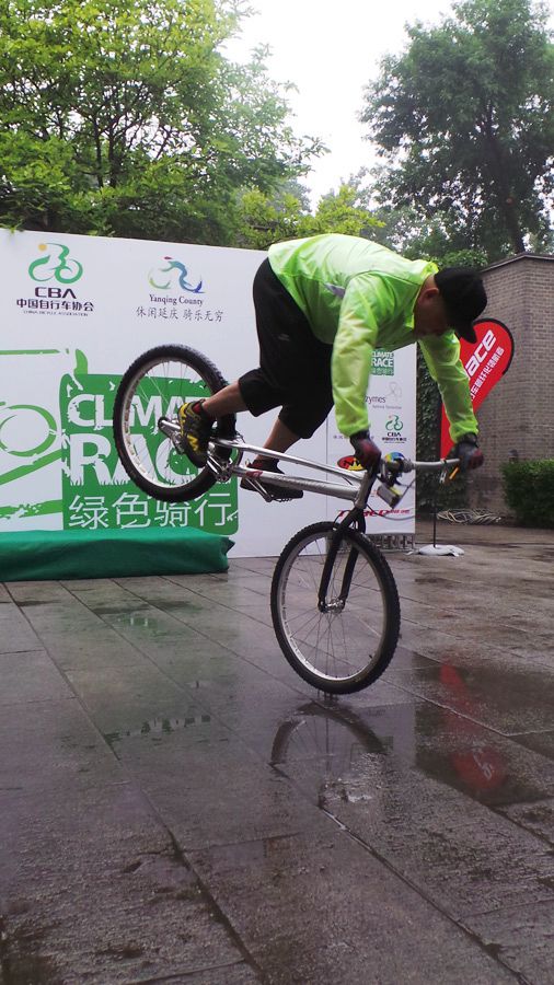 A Chinese performer presents stunts on bike. (People’ Daily Online/ Gao Yinan)
