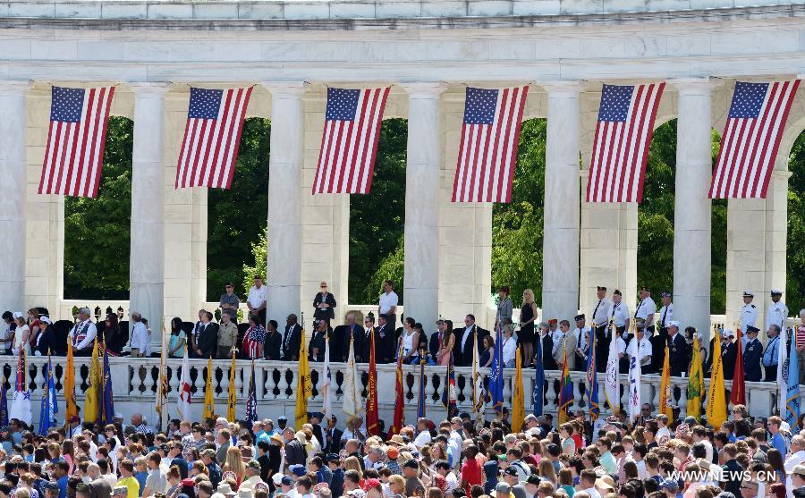 People attend a Memorial Day event at Arlington National Cemetery, outside Washington D.C., the United States, May 26, 2014. (Xinhua/Yin Bogu)