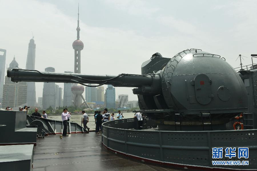 Visitors visit Russian guided missile cruiser Varyag at a port in Shanghai on May 26, 2014. (Xinhua News Agency/Long Wei)