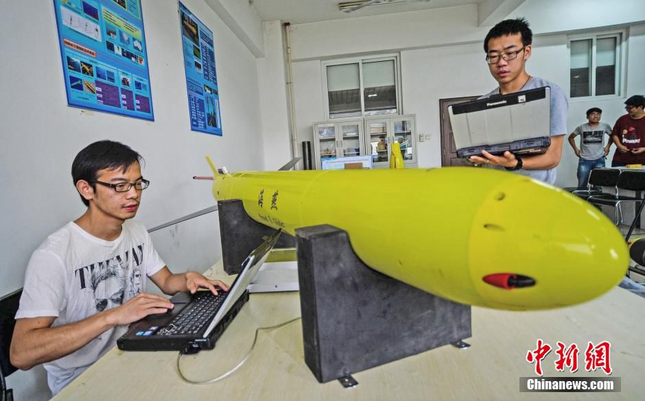 The underwater glider, a yellow torpedo-like device, is 1.8 meters in length with a diameter of 0.3 meter, and weighs about 70 kilograms. The device is developed by a scientific research team of Tianjin University.