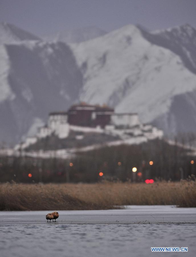 | Photo taken on Jan. 15, 2014 shows the scenery of Lalu Wetland Reserve in Lhasa, capital of southwest China's Tibet Autonomous Region. According to a survey released on Wednesday by the regional forestry department, Tibet has seen an increase of wetland by 524,200 hectares in the past decade thanks to dedicated conservation efforts, taking the region's total to 6.52 million hectares. (Xinhua/Liu Kun) |