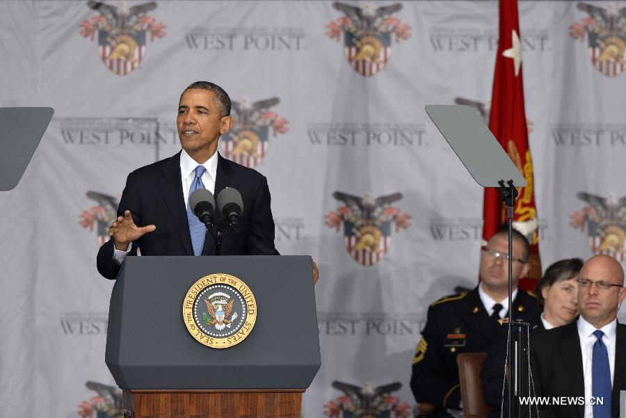 U.S. President Barack Obama (L) addresses the graduation ceremony at the United States Military Academy at West Point, New York, the United States, on May 28, 2014. Obama said here Wednesday that he believes in the foreseeable future, terrorism remains the most direct threat to America at home and abroad. (Xinhua/Wang Lei)