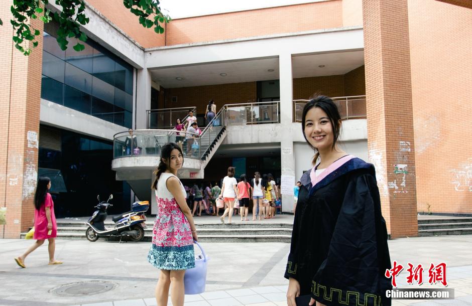 College students from Southwest University for Nationalities pose for group photos to mark their graduation on May 28, 2014. (CNS/Huang Song Zhe)