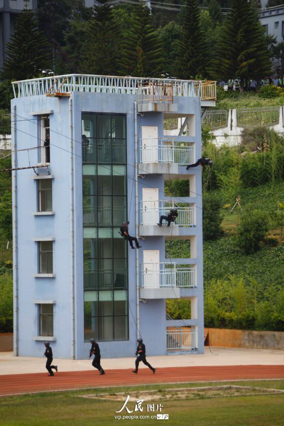 Rope descending and rapid firing.(vip.people.com.cn/Li Faxing)