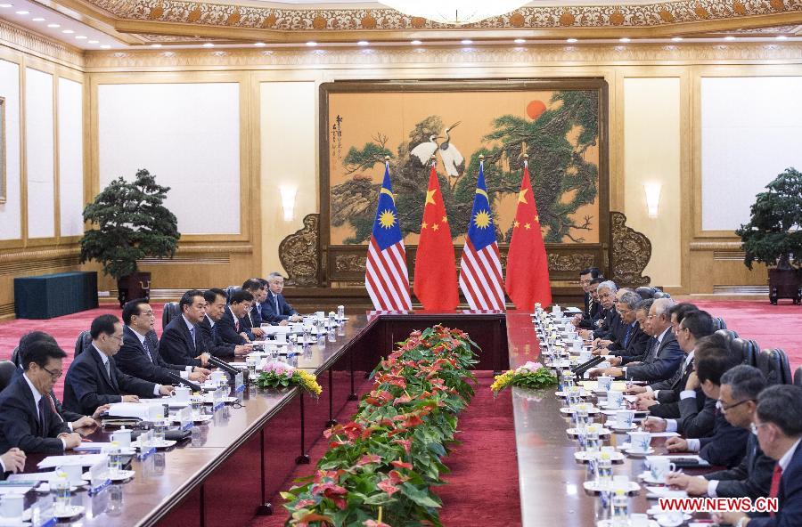 | Chinese Premier Li Keqiang holds talks with Malaysian Prime Minister Najib Razak in Beijing, capital of China, May 29, 2014. (Xinhua/Wang Ye) |