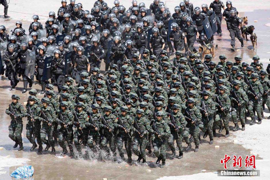 | An anti-terrorism and riot comprehensive exercise is held in Beijing on Thursday. Special forces, fire and rescue departments jointly took part in the drill. The police are set to start a year-long nationwide anti-terrorism operation after attacks took place in Xinjiang and several cities across China, according to Xinhua News Agency. (CNS Photo) |