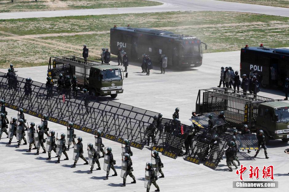 An anti-terrorism and riot comprehensive exercise is held in Beijing on Thursday. Special forces, fire and rescue departments jointly took part in the drill. The police are set to start a year-long nationwide anti-terrorism operation after attacks took place in Xinjiang and several cities across China, according to Xinhua News Agency. (CNS Photo)
