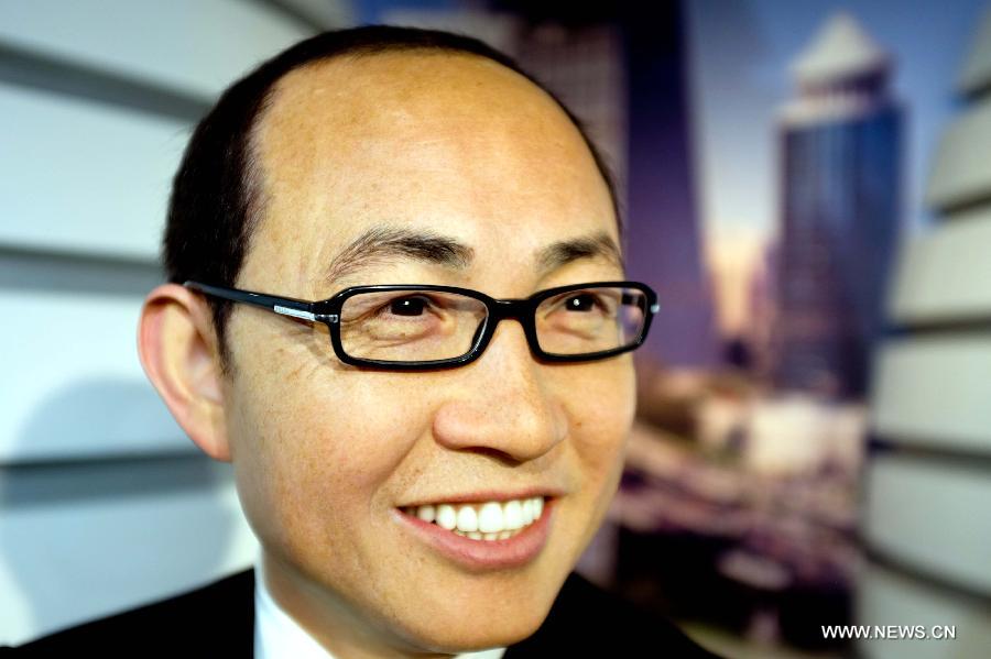 Photo taken on May 29, 2014 shows the wax figure of Pan Shiyi, CEO of SOHO China, at Madame Tussauds Wax Museum in Beijing, capital of China. London's Madame Tussauds Wax Museum set up its branch in Beijing this summer, and the museum will officially open to the public on May 31.(Xinhua/Wang Jianhua)