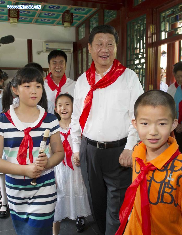 Chinese President Xi Jinping visits Beijing Haidian National Primary School in Beijing, capital of China, May 30, 2014. Xi attended an activity to celebrate the upcoming International Children's Day at the primary school. (Xinhua/Xie Huanchi)