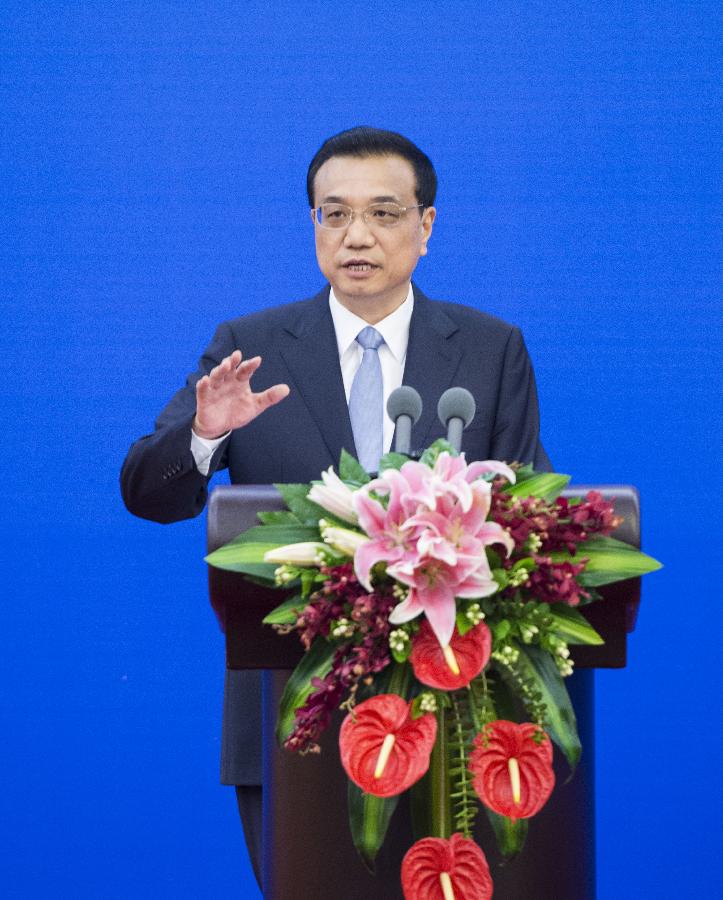 Chinese Premier Li Keqiang speaks at the celebration of the 40th anniversary of the establishment of diplomatic relations between China and Malaysia in Beijing, capital of China, May 31, 2014. Malaysian Prime Minister Najib Razak also attended the celebration on Saturday. (Xinhua/Wang Ye)